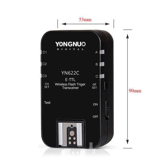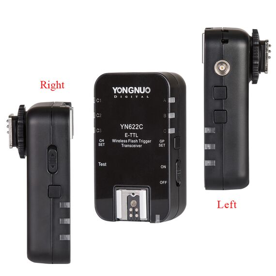 Комплект радіосинхронізатора Yongnuo YN622C-TX (передавач) та YN622C (прийомо-передавач). Передавач YN622C-TX виступає головним блоком управління для популярних приймачів YN622C, забезпечуючи більше функцій і набагато зручніше керувати приймачами за допомогою РК-дисплея. 3 груп (A / B / C)