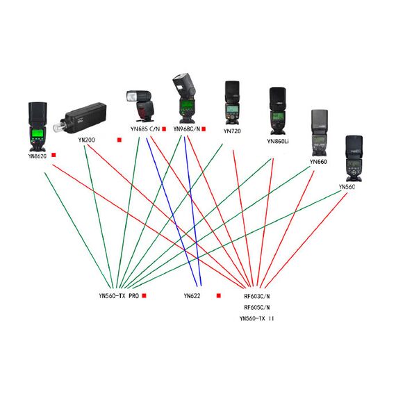 Новейший трансмиттер YN560-TX PRO объединяет мануальные синхронизаторы YN560/RF603/RF602 и поддерживающие TTL YN622 в одну схему работы со вспышками. YN560-TX PRO может управлять настройками и запускать вспышки серий YN200/YN862 и более ранние модели YN622C(N) II/YN685/YN968C/ YN968N(II) (в режиме 560RX), при условии обновления на новейшую версию программного обеспечения. Совместим с фотовспышками и синхронизаторами серий YN560III/IV/YN660/YN720/YN860Li/RF603/RF605 в мануальном и мульти режиме.