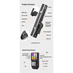 Могут использоваться при видео- и фотосъемке различными типами видео- и фотокамер.   Конструктивные особенности: Используются 360 светодиодов с цветовой температурой 5600К и 60 RGB  SMD светодиодов Два возможных способа управления: - с пульта, который можно снять с...