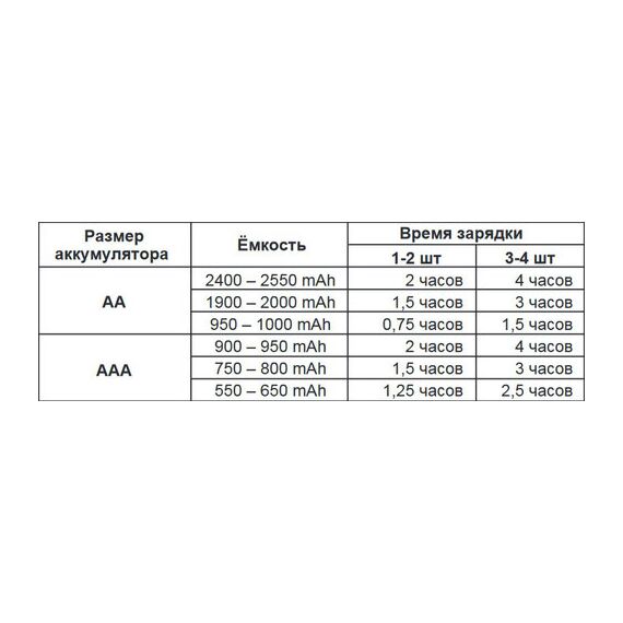 - Размер заряжаемых аккумуляторов: AAA, AA